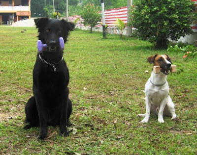 Look at that....ya have a dumbell in yer mouth....'n I bet ya have jaws of steel too from usin' 'em....don't know about all the trainin' stuff but if it works fer ya it must be good....